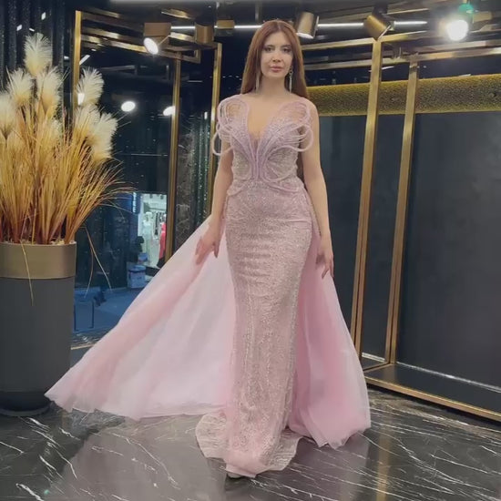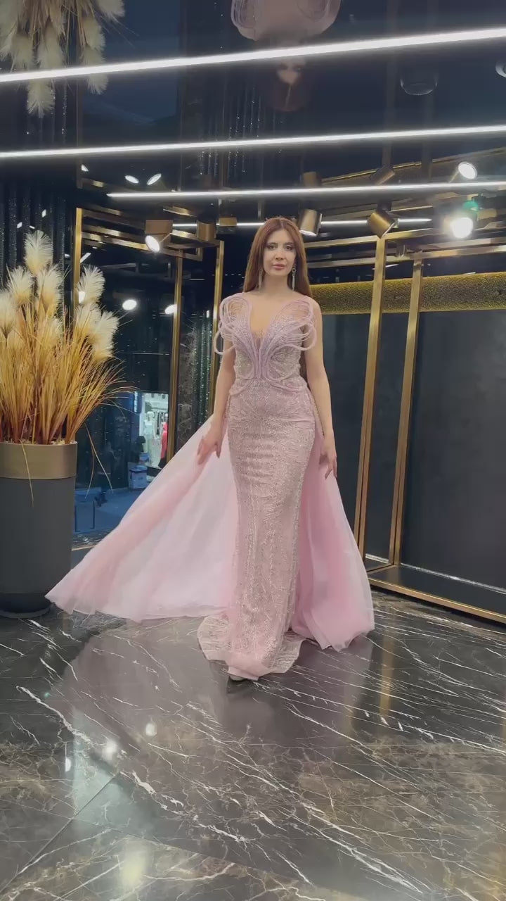 Fitted tulle embroidered dress, with v cut spaghetti straps top, designed with over corset butterfly beaded piece. tulle attached over skirt.